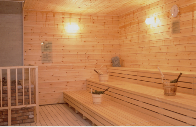 扉を開けると、広々とした空間。収容人数は 30人規模。温度は 約98℃。高温ですが湿度のバランスが絶妙で息苦しさはなく、肌の表面から芯まで一気に温めてくる“本物の熱”を感じることができるでしょう。